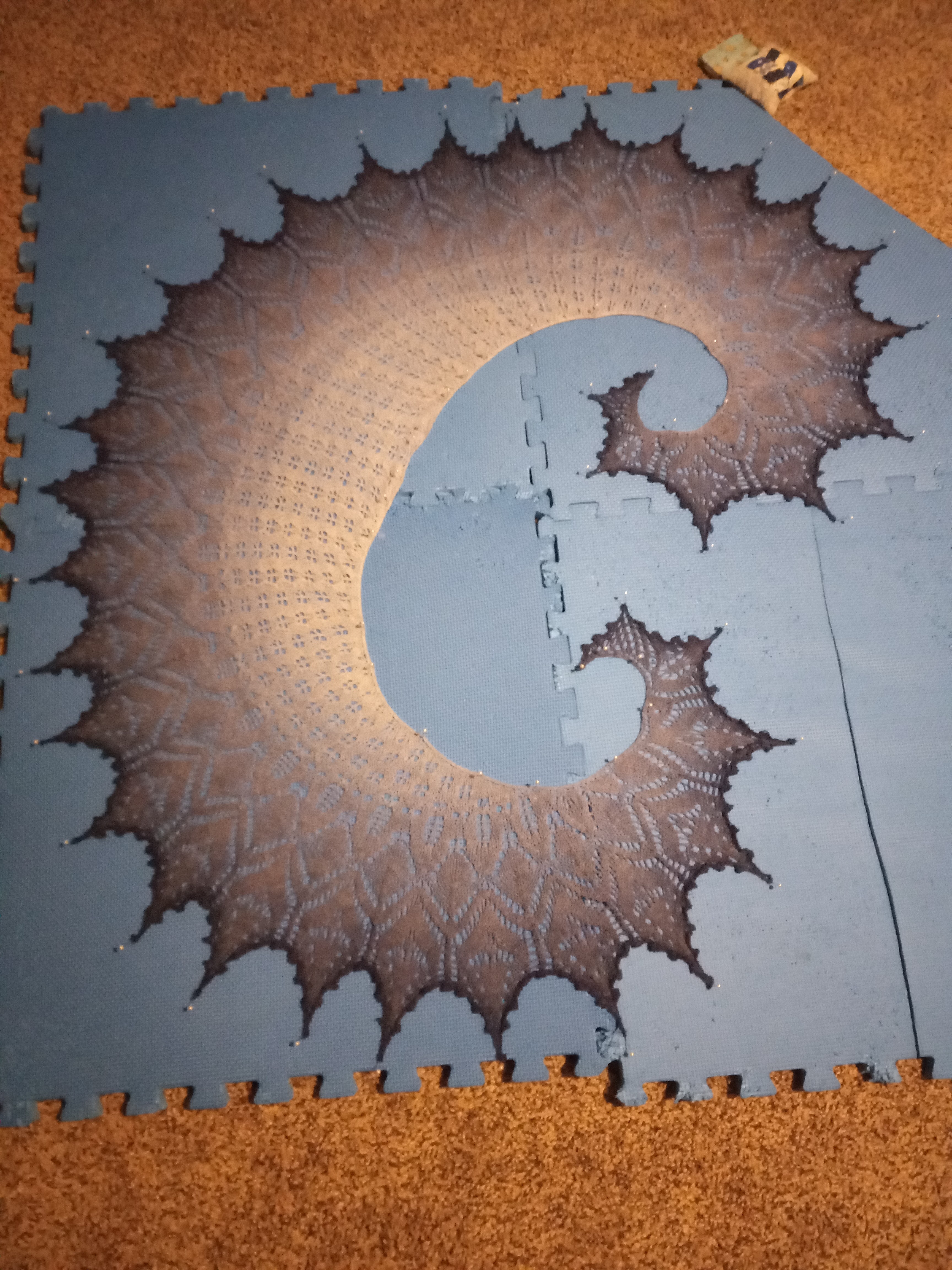 It was my first lace shawl in a very long time, I just remembered the last one I did was right around the time I moved here last year. My mind blanked on that till just now, I was about to say it's been years since I knit a lace shawl. To be fair, it's been years since I knit a traditional all-over lace shawl out of actual lace weight yarn.